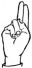 На ћирилици написано КОНСТАНТИН ГАЋЕ састоји се из 14 слова [?]. Исписано ћириличном једноручном азбуком за глувонеме: